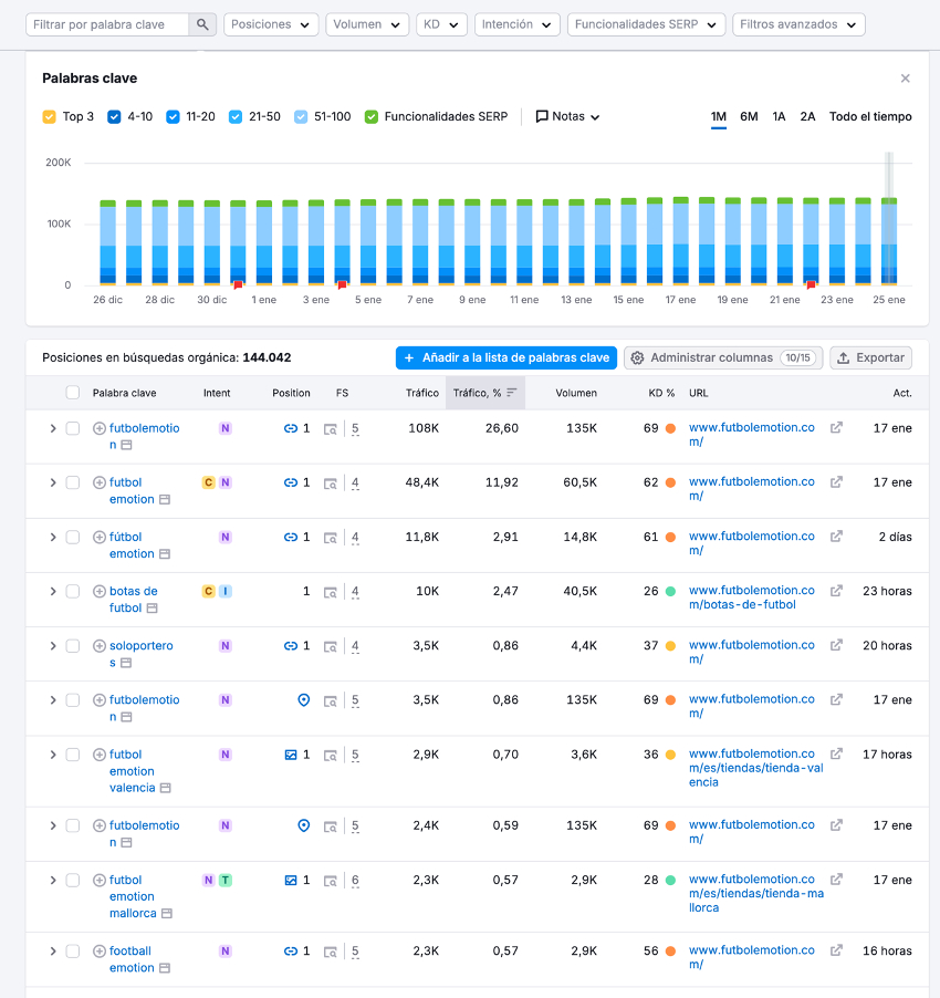 INSIGHT: el tráfico de marca es vital, pero cuando empiezas un proyecto de cero (o lo rediseñas completamente como en este caso), tienes que trabajar mucho la marca para que crezca y genere autoridad y tráfico. Fútbol Emotion ha hecho esto extraordinariamente bien y de una manera natural y orgánica.