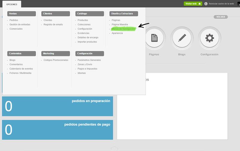 2) Ve a OPCIONES- Diseño y Estructura-Menús de Navegación tal y como se ve eso la imagen de más abajo: -