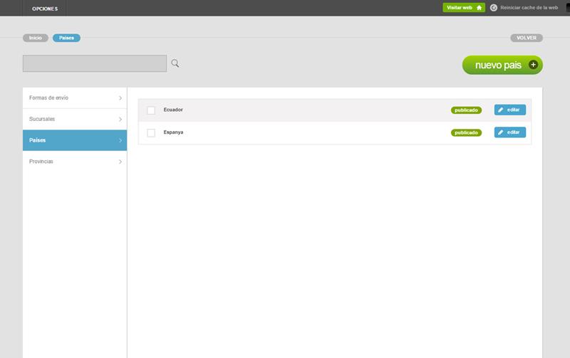 En la imagen de abajo puedes ver como en la lista de países ya aparece el que acabas de crear, Ecuador:
