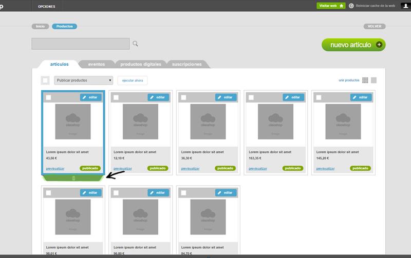 2) En la imagen siguiente se muestra el listado de productos de tu tienda. Desde aquí mismo puedes editarlos o borrarlos de manera muy sencilla: