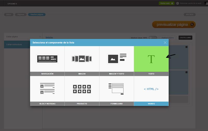 Hemos entrado en la página de la sección TEXTO, ahora selecciona la opción TEXTO como se indica en la imagen de más abajo: -
