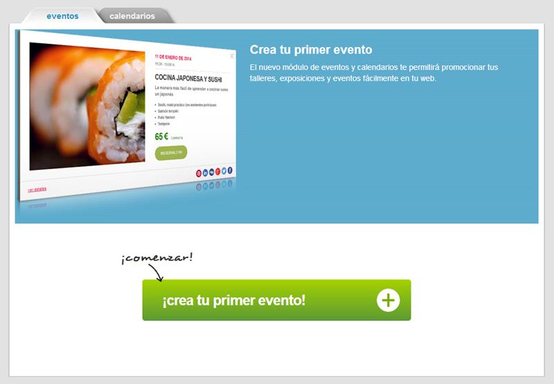 Aquí podrás crear eventos y calendarios. Los calendarios te servirán para organizar los diferentes eventos de tu negocio. -