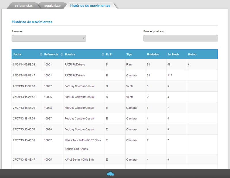 En la última pestaña "histórico de movimientos", encontrarás el histórico de movimientos de existencias actualizado en tiempo real.