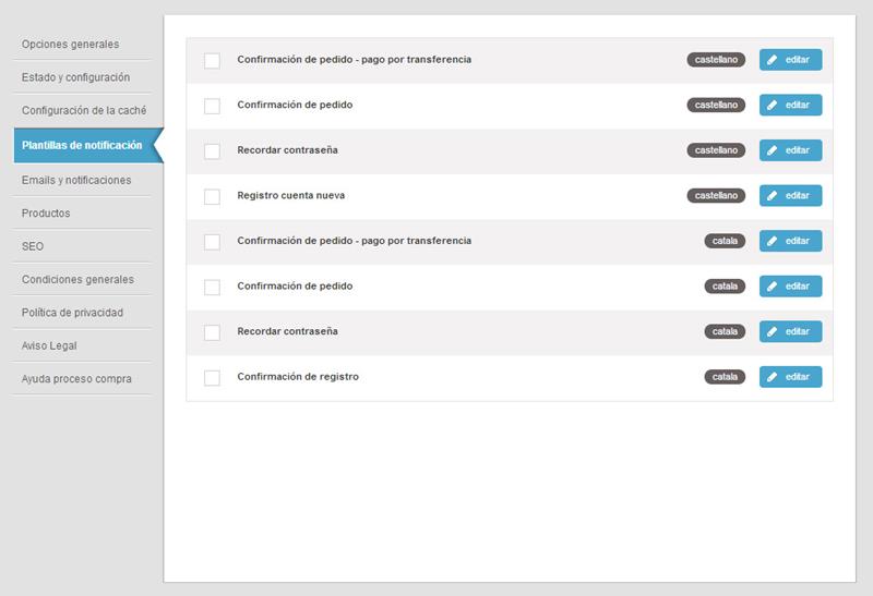 En esta sección encontraremos todas las plantillas de notificación predefinidas.