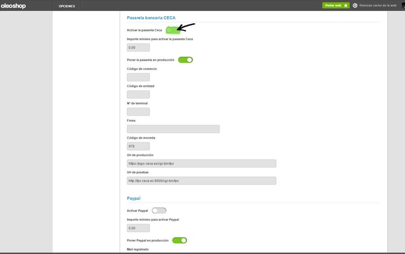 2) Por último, baja por la página hasta encontrar la sección llamada PASARELA BANCARIA CECA. Una vez la encuentres tan solo activa el botón y ya lo tienes: