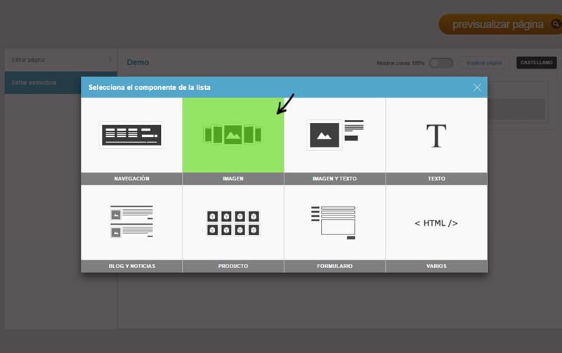 5) Dentro del componente IMAGEN tienes distintas opciones donde elegir. Selecciona LISTADO haciendo clic en él: