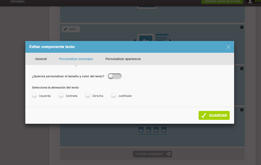 También podrás personalizar la apariencia común del componente: modificar los margenes, añadirle un color de fondo, o incluso si te atreves podrás ponerle un fondo de imagen al componente. -