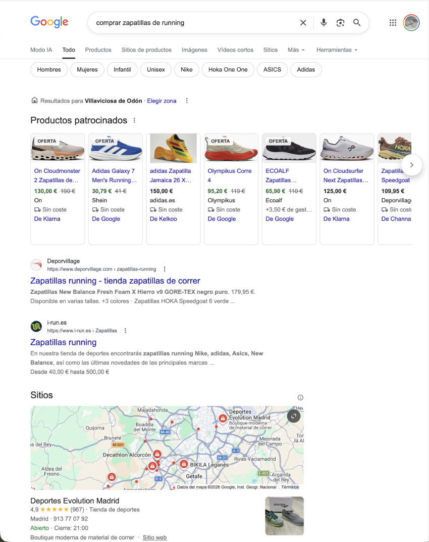 - Mapas: en Google muchos resultados locales incluyen el módulo de mapas, que resuelve también consultas de los usuarios que buscan una tienda física o que no tienen preferencia clara por el eCommerce. Perfecto para usuarios multicanal o fans del retail.