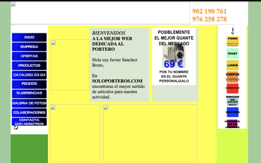 Tal com indica el seu nom, a Soloporteros es venia tota mena d’equipament tècnic per a porters de futbol. Això era una bona idea perquè, sent objectius, era un nínxol específic que no era atès amb aquest nivell de zoom.