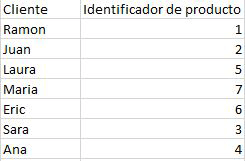 Per a això, al costat de la primera taula on se situen els productes, a la quarta columna, crearem la columna "Client", i just a sota de la cel·la, inserirem la fórmula següent: