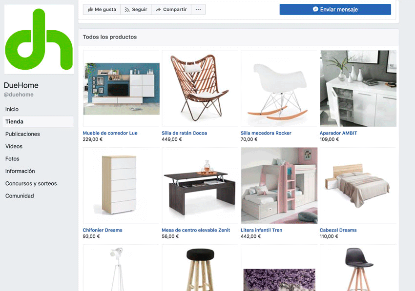 Bé, és una altra alternativa, encara que està a mig fer. M'explico: pots integrar una botiga amb el teu catàleg de productes dins de la teva pròpia pàgina del perfil de Facebook, però, tret que siguis resident als EUA, no hi ha l'opció de pagar directament a la botiga amb la qual cosa els productes s'han de redirigir a un eCommerce fora de Facebook.