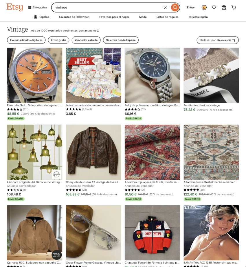 Concretament, estem parlant d’Etsy Vintage, que manté la seva essència com a portal de venda d’artesania i productes únics, cosa que es compatibilitza amb la naturalesa dels marketplaces, en els quals compartim espai amb innumerables competidors.