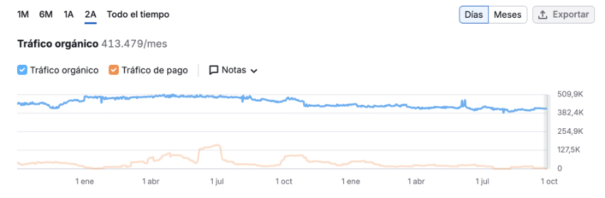 - It contrasts the organic trend, if we cross it with the paid traffic, which seems to fall abruptly. A drop so important could indicate, rather than a strategic decision, some problem with the Google Ads account. Although, in the graph, we see that they have had moments with more active presence in other months.