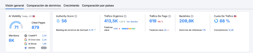 - It stands out that it has more than remarkable traffic volume for an online store, with more than 413,500 sessions. It even rises, having “lost” many keywords.