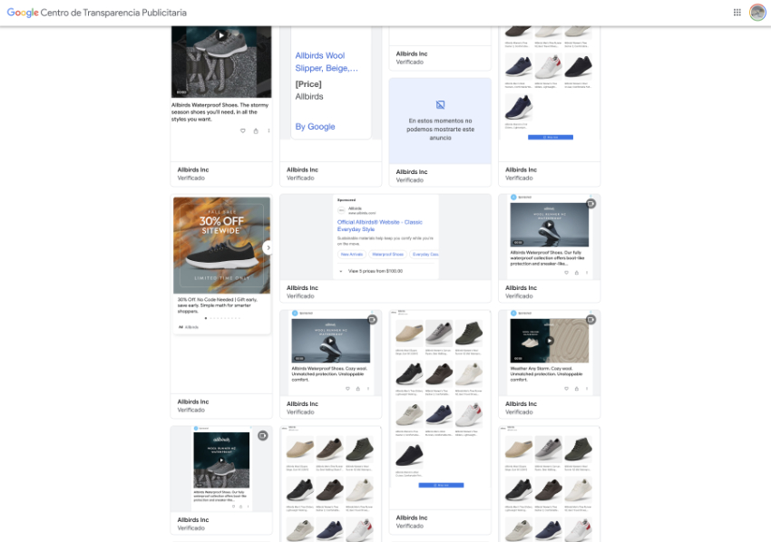 Here you can see that Allbirds bets on those platforms that allow it to give relevance to images, videos and Merchant Center listings. -