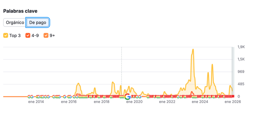 I know that I have gone on a bit too long in the organic part of the strategy, but I think it is worth it because of the number of peculiarities it has. Although its strength within search engines is “free” traffic, it is undeniable that they also run paid campaigns, both on Google and on Social Networks.At the time of writing this post, keep in mind that the most powerful time of the year has just passed, so it is not strange to see that advertising investment has been reduced by up to 60% and even that bids for different search terms have also been reduced. This is completely natural and is directly related to seasonality.