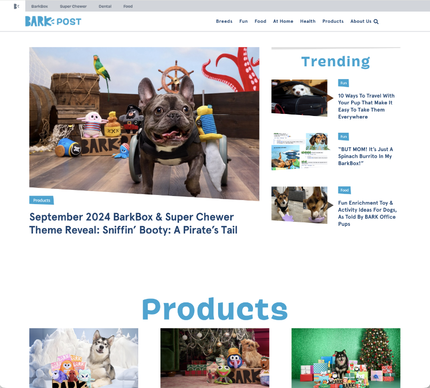 And since soft selling and content go hand in hand, I could not miss the opportunity to mention Bark Box, a store selling products for animals, which has stood out for years for also maintaining a very comprehensive and well-documented blog.The structure is organized based on categories such as food, health, fun, breeds… and products, but everything is so well thought out and balanced that the products are not the protagonists (for that they have the eCommerce, although obviously the blog articles link to specific products).Regarding topics, for example, we find many posts with titles such as: