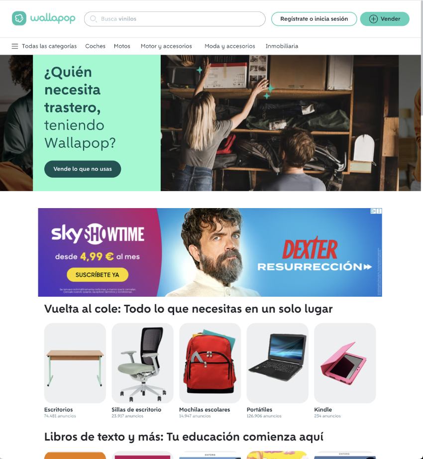 From a logical point of view, it is to start with one of the pioneers among this type of services. Wallapop, which began as a portal oriented to C2C (customer to customer), but went so far as to launch its version for professionals which it named Wallapop Pro.It does not require much introduction, but to sum up a little, we will say that, launched in 2013, it has been progressively evolving, expanding its functionalities at the same time as it gained notoriety —and users— among the national public.Main advantages: